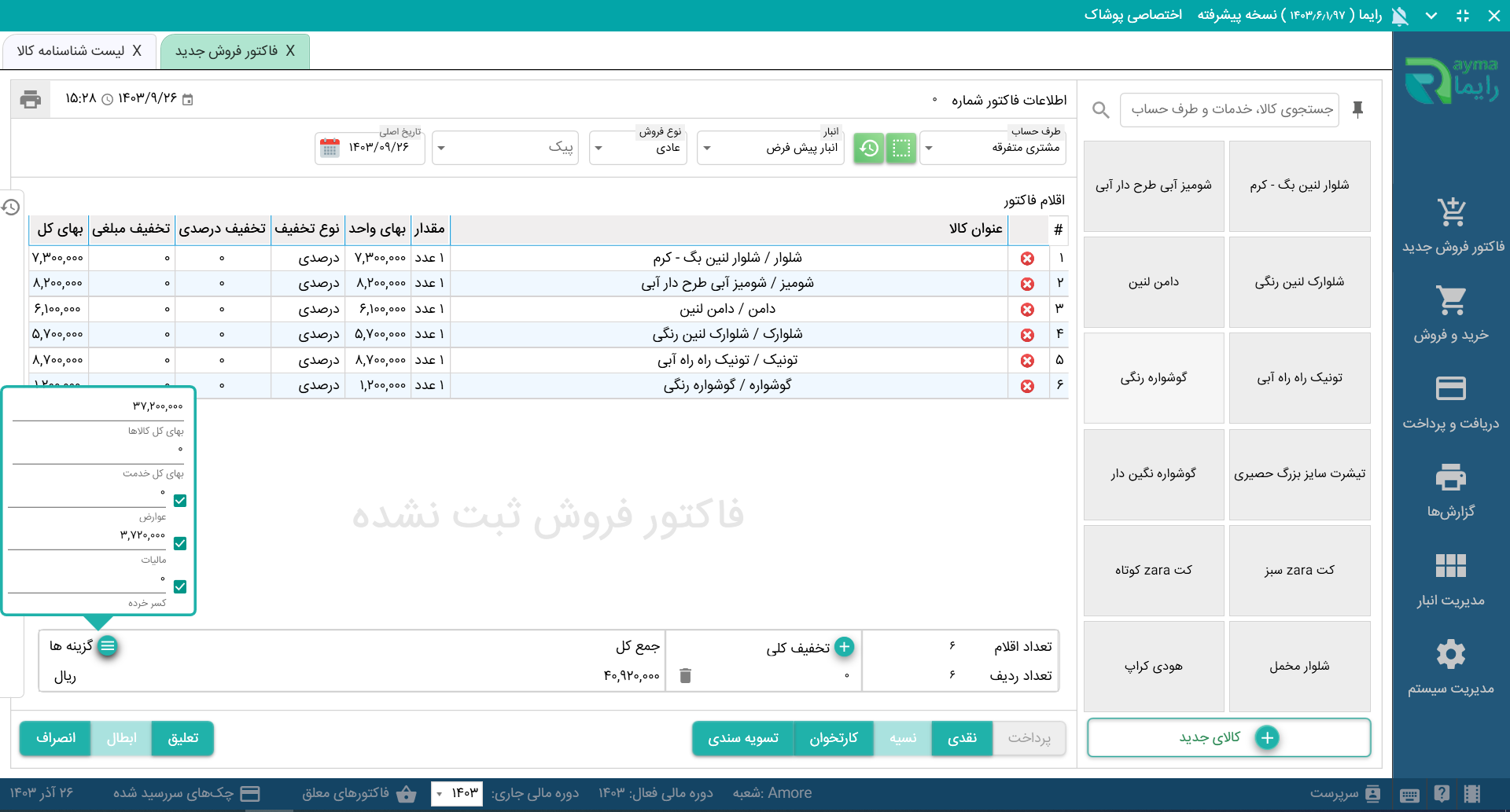 امکانات نرم افزار فروشگاهی پوشاک رایما